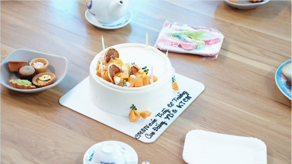 Buổi lễ được diễn ra trong không gian thân mật và trang trọng, với bữa tiệc ngọt nhẹ nhàng, hoa tươi và những lời chúc tốt đẹp nhất gửi đến các cô, các chị – những bông hoa tươi thắm đang ngày đêm cống hiến cho sự phát triển của nhà trường.